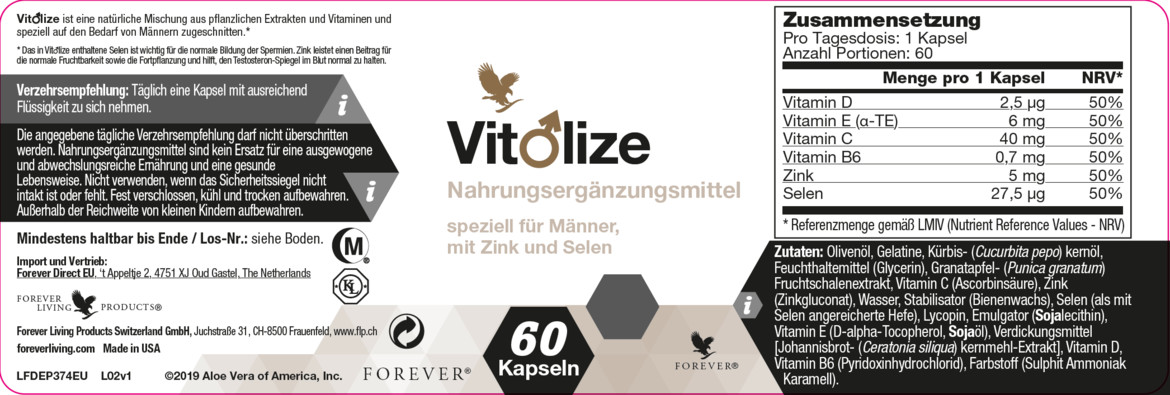 «Вит♂лайз для Мужчин» - это усовершенствованная формула, по сравнению с Форевер Прост6. В неё, помимо растительных компонентов, витамина Е , селена и ликопина, входят витамины С, D и В6 в сочетании с цинком и кверцетином. «Вит♂лайз™ для Мужчин» оказывает нормализующее действие на функцию простаты, поддерживает оптимальное соотношение и баланс половых гормонов, снижая риск развития аденомы и возможности её озлокачествления.